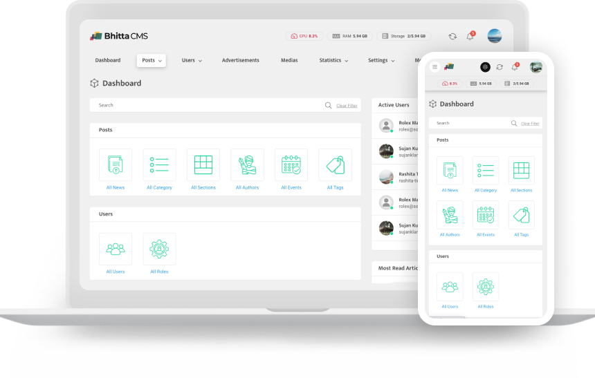 Bhitta CMS ? With Bhitta CMS you don't need any technical or coding skills. Its intuitive, powerful yet simple dashboard allows your website to deliver stunning experiences.